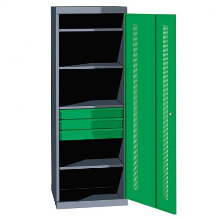 - Zaklepanje omare s cilindrično ključavnico, ki jo dopolnjuje varnostno zaskočni mehanizem z 2-točkovnim delovanjem
