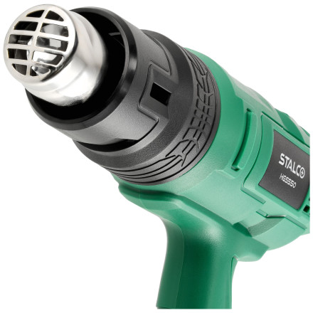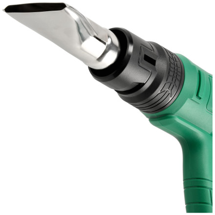 Zmogljiv vroči zračni pištolj z LCD zaslonom in dodatno zaščito. Vključuje več nastavkov za vsestransko uporabo.