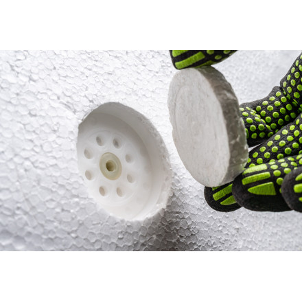 Termoizolacijski pokrovi Ø67 mm za učinkovito pritrditev in izboljšano izolacijo. Izdelani iz stiropora.