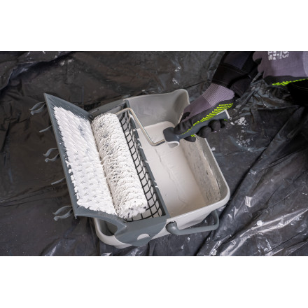 Gril za barvo iz trpežnega polipropilena, zasnovan za vedro S-73924, omogoča enostavno uporabo valjčkov in čopičev.
