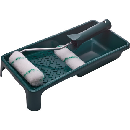 Set za barvanje Zelena linija z močno tkanino je idealen za dvo-komponentne in goste barve. Vključuje pladenj, ročaj in dva valjčka.