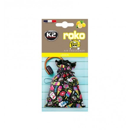 K2 Roko je premium osvežilec zraka primeren za vsako vozilo ali prostor. V trendovski plateni vrečki so pakirana fina odišavljena zrnca, prepojena z nežnimi aromami, ki dolgotrajno zagotavljajo prijeten in svež vonj. Osvežilec ima prijeten vonj po limoni.