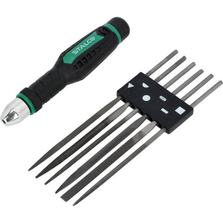 Set 7 preciznih pil z inovativnim ročajem za hitro menjavo orodja, idealen za natančno obdelavo kovin.