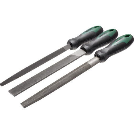 Set treh kovinskih pil z dolžino 200 mm, idealen za natančno obdelavo kovin. Dvokomponentni ročaj zagotavlja udobje in nadzor.