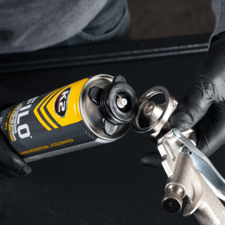 Profesionalna pištola za peno z lahkim aluminijastim ohišjem in medeninastim nadzorom pretoka. Zagotavlja popolno tesnjenje.