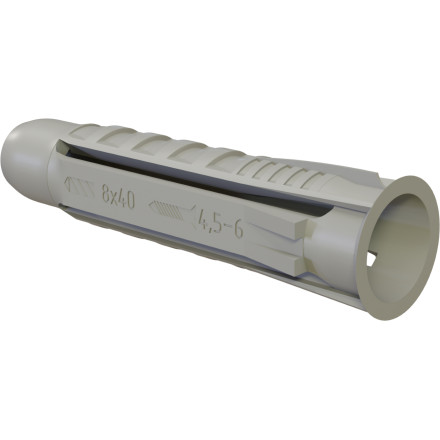 Univerzalni vložek iz poliamida je idealen za trdne in votle materiale, primeren za vijake premera 4,5-6,0 mm.