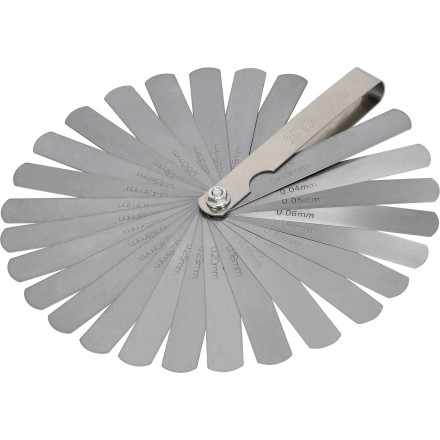 26-rezilni merilni listič (0,04–0,63 mm) iz nerjavečega jekla – orodje za merjenje in nastavitev zračnosti ventilov v motorjih z notranjim zgorevanjem.