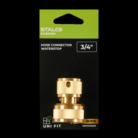 Izjemno vzdržljiv medeninasti priključek Waterstop 3/4” zagotavlja varno in enostavno povezavo vaših vrtnih cevi.