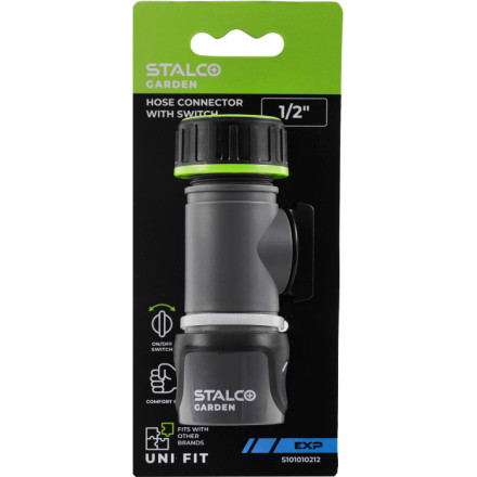 Olajšajte svoje vrtno namakanje s spojko za cev s stikalom 1/2”, ki omogoča enostavno upravljanje pretoka vode.