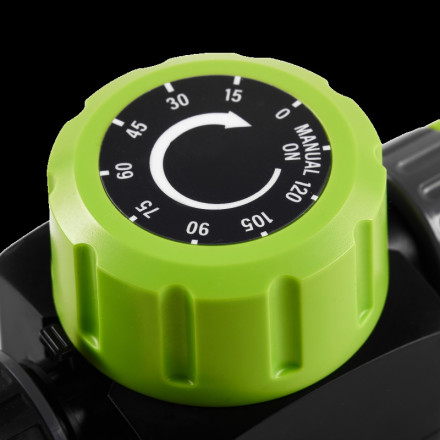 Enostavno upravljajte zalivanje vrta z našim časovnikom EXP, ki omogoča nastavitev do 120 minut.