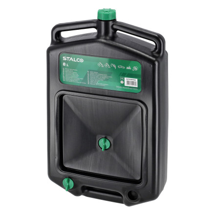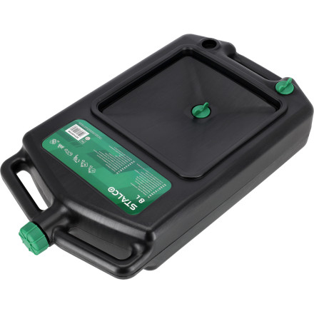 8-litrska oljna posoda, zasnovana za servisiranje avtomobilov, motornih koles in motorjev z notranjim zgorevanjem, odporna na delovne tekočine, vključno z olji, gorivi in maščobami.
