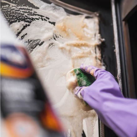 Izdelek je brez dišav in varen za očiščene površine – ne bo jih opraskal ali poškodoval. Priročen razpršilec zagotavlja natančen nanos, pena pa ostane na mestu in deluje točno tam, kjer je potrebna.
