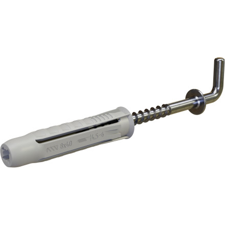 Univerzalni vložek s kavljem za zanesljivo pritrditev. Premer vrtanja 8 mm, vijak 4,5x46 mm.