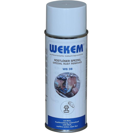 Zahvaljujoč posebej prilagojenemu izboru surovin WS-38-400 izjemno hitro deluje na močno zarjavelih povezavah. Prodre tudi v najmanjše pore in prostore. Zahvaljujoč zelo dobrim lastnostim lezenja in visokemu kapilarnemu učinku. Komponente, odporne proti koroziji, dolgoročno preprečujejo nadaljnje nastajanje rje. Zahvaljujoč dodatku MoS2 se izdelek lahko uporablja tudi pri ekstremnih temperaturah in tlačnih obremenitvah. Visoko kapilarno delovanje. Dolgoročno je preprečeno ponovno nastajanje rje.