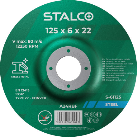 Robustna brusna plošča za kovino velikosti 125 mm, zasnovana za natančno in učinkovito brušenje.