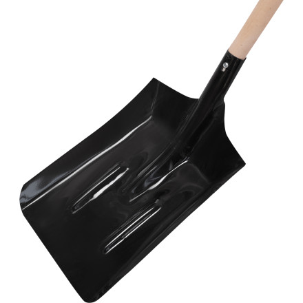 Robustna lopata za premog z lesenim ročajem in dvokomponentnim oprijemom za udobno in učinkovito delo.