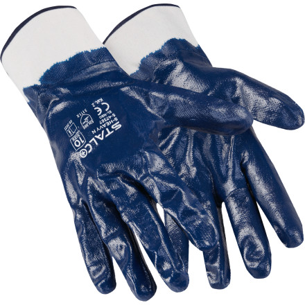 Te rokavice so zasnovane za delo v zahtevnih pogojih, kjer je potrebna dodatna zaščita pred mehanskimi tveganji. Nitrilna prevleka zagotavlja odličen oprijem, medtem ko bombažna podlaga omogoča zračnost in udobje med dolgotrajno uporabo. Idealne so za uporabo v industriji, gradbeništvu in drugih težkih delovnih okoljih.