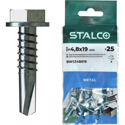 Zasnova svedra z vrtalno konico omogoča hitro vgradnjo v jeklo, največja zmogljivost vrtanja do 3–5 mm. Vijak ima fleksibilno steblo in utrjen navoj, kar zagotavlja varno pritrditev na jeklo. Natančno izdelana šesterokotna glava zagotavlja stabilno prileganje v vtičnico. Možnost barvanja v katero koli RAL barvo omogoča, da se ujema z barvo pločevine in dodatno ščiti pred korozijo.