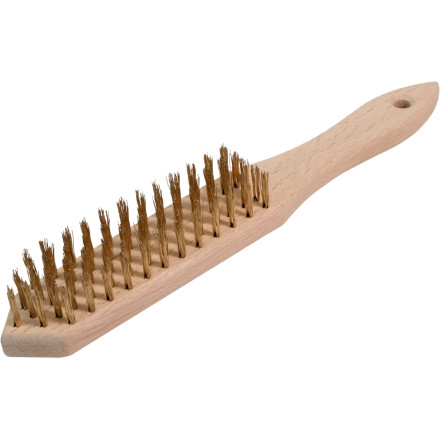 Žična krtača s 6 vrstami za zanesljivo čiščenje. Trden lesen ročaj z luknjo za enostavno shranjevanje.