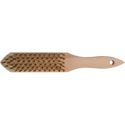 Žična krtača s 6 vrstami za zanesljivo čiščenje. Trden lesen ročaj z luknjo za enostavno shranjevanje.