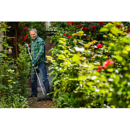 Očistite svoj vrt s to 40 cm dolgo vrtno krtačo z lahkim aluminijastim ročajem in udobnim oprijemom.
