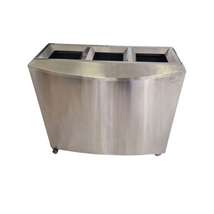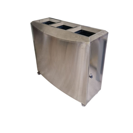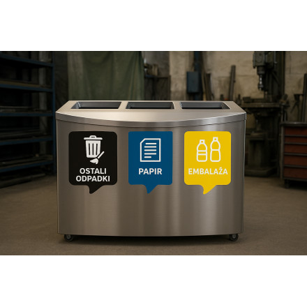 Poskrbite za urejen in okolju prijazen delovni prostor z elegantnim košem za ločevanje odpadkov iz nerjavečega jekla. Ta tri-prekatni sistem omogoča enostavno ločevanje različnih vrst odpadkov na enem mestu – idealno za pisarne, javne prostore, recepcije in druge poslovne ambiente.