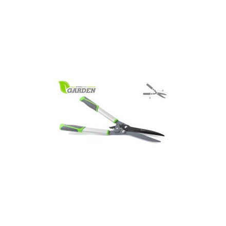 Popolne škarje za živo mejo z rezili iz karbonskega jekla in udobnimi, nedrsečimi ročaji.