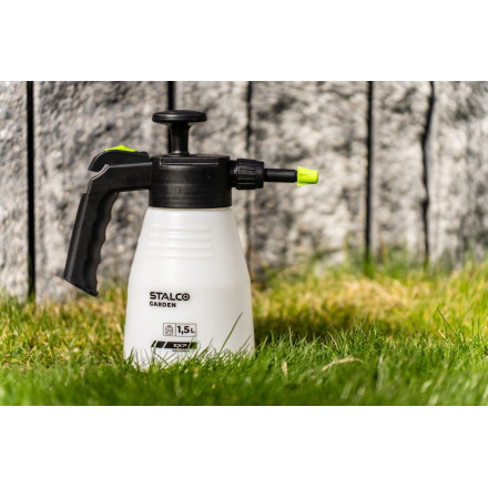 Zanesljiv ročni tlačni razpršilec s kapaciteto 1,5 litra iz trpežnega HDPE materiala za natančno vrtnarjenje.