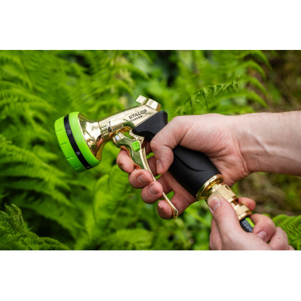 Ta pršilna pištola je idealna za uporabo na vrtu, pri zalivanju trate, cvetličnih gredic ali pri pranju avtomobila. S svojo vzdržljivostjo in funkcionalnostjo bo postala nepogrešljiv pripomoček v vaši zbirki vrtnega orodja.