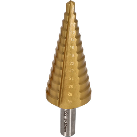 Izjemno natančen stopničasti sveder HSS-TiN za hitro in gladko vrtanje v kovino.
