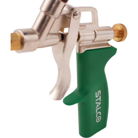 Profesionalna pištola za peno z lahkim aluminijastim ohišjem in medeninastim nadzorom pretoka. Zagotavlja popolno tesnjenje.