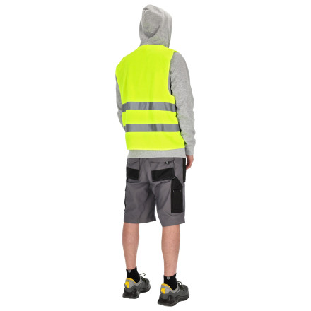Izjemno viden odsevni telovnik SHINE SUMMER z večnamenskimi žepi in trojnimi šivi za dodatno vzdržljivost.