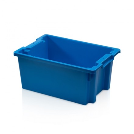 - Plastične nakladalne zaboje lahko skladamo drug v/na drugega, ko so prazni ali polni