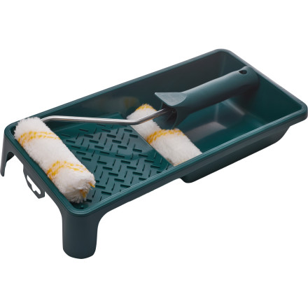 Set za barvanje Zelena linija z močno tkanino je idealen za dvo-komponentne in goste barve. Vključuje pladenj, ročaj in dva valjčka.