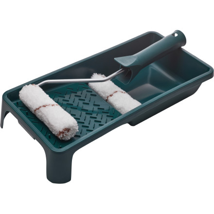 Set za barvanje Zelena linija z močno tkanino je idealen za dvo-komponentne in goste barve. Vključuje pladenj, ročaj in dva valjčka.