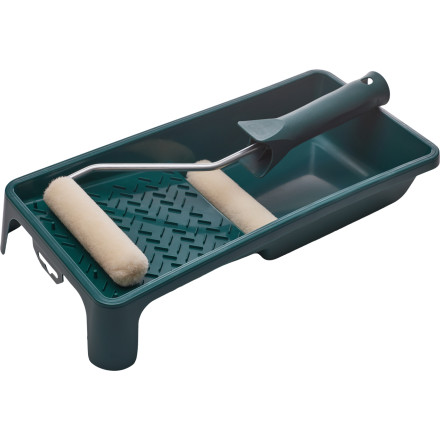 Set za barvanje Zelena linija z močno tkanino je idealen za dvo-komponentne in goste barve. Vključuje pladenj, ročaj in dva valjčka.