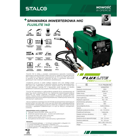 Za napravo v svojem razredu FluxLite 140 ponuja vrsto funkcij za izboljšanje udobja: nastavljiv Hot Start, ARC Force in Anti-stick, ki olajšajo varjenje MMA in preprečujejo lepljenje elektrod. Napravo lahko napaja tudi generator, zaradi česar je dobra rešitev za uporabo na terenu.