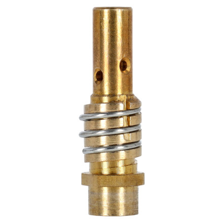 Tokovni konektor je sestavni del varilnega gorilnika MIG/MAG, ki je odgovoren za povezavo kontaktne konice z gorilnikom in zagotavljanje pravilnega pretoka varilnega toka. Je ključna komponenta, ki vpliva na stabilnost varilnega procesa in pravilno dovajanje žice.