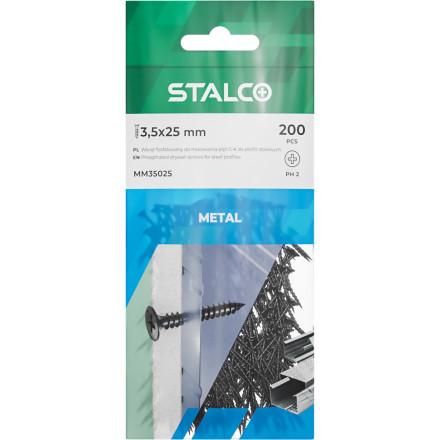 Fosfatirani samovrtalni vijaki 3.5x25mm za hitro in učinkovito montažo mavčnih plošč ter kovinskih profilov.