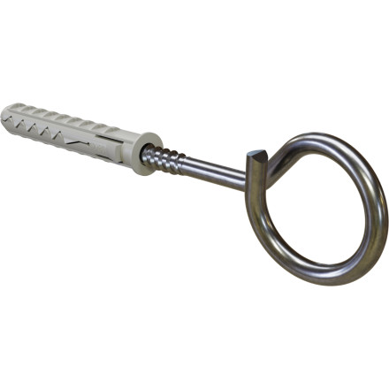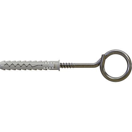 Zanesljiv dowel z očesnim kavljem za varno in močno pritrditev. Polietilenski vložek in pocinkani jekleni vijak zagotavljata trajnost.