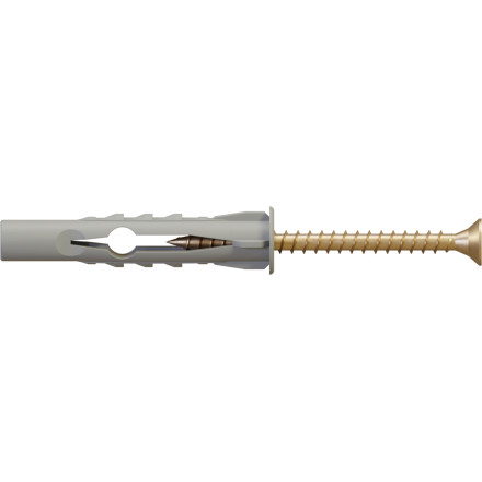 Univerzalni vložek s poliamidnim vložkom in pocinkanim jeklenim vijakom za zanesljivo pritrditev v različnih materialih.