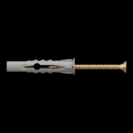 Univerzalni vložek s poliamidnim vložkom in pocinkanim jeklenim vijakom za zanesljivo pritrditev v različnih materialih.