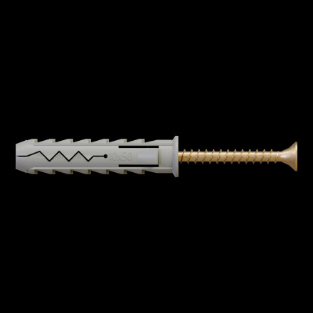 Vložek s križno glavo in vijakom, idealen za trdne pritrditve. Velikost vložka: 10x50 mm, vijaka: 5,0x50 mm.
