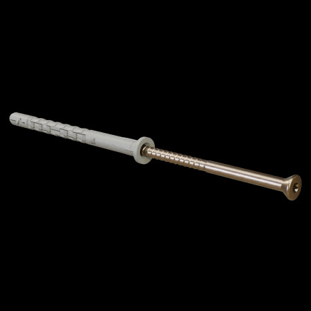 Frame Anchor TXS 10x140 mm je izjemno trpežen z visokokakovostnim najlonskim vložkom in jeklenim vijakom za zanesljivo pritrditev.