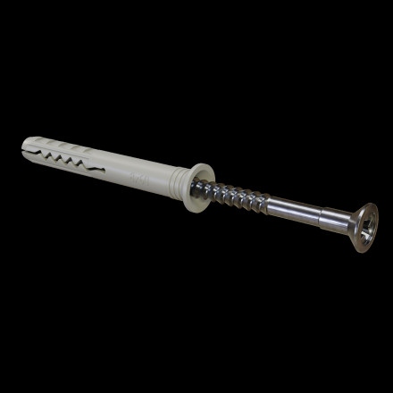 Hitri vložek iz polietilena in galvaniziran žebelj zagotavljata hitro in trdno pritrditev v različnih materialih.