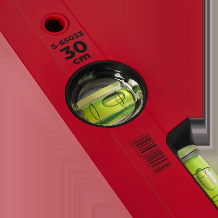 Rdeča aluminijasta libela 30 cm z visoko natančnostjo in 30-letno garancijo na vialo. Odporna na udarce in UV žarke.