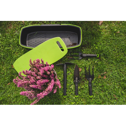 Lahka in trpežna vrtna ročna vilica STR iz plastike, enostavna za shranjevanje.
