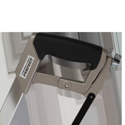 Ergonomska žaga za kovino s prilagodljivo napetostjo rezila in možnostjo montaže pod kotom. Dolžina 300 mm.