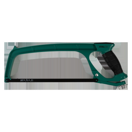 Profesionalna kovinska žaga dolžine 300 mm z ergonomskim ročajem in nastavljivo napetostjo rezila za natančno in udobno delo.