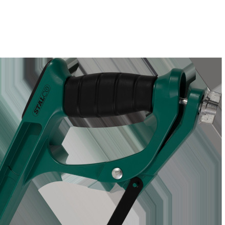 Ergonomska žaga za kovino s prilagodljivo napetostjo rezila in možnostjo montaže pod kotom. Dolžina 300 mm.